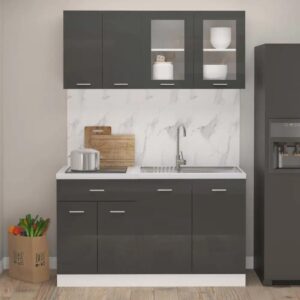 Shumee 4-Cz. Zestaw Szafek Kuchennych Wysoki Połysk Szary Płyta