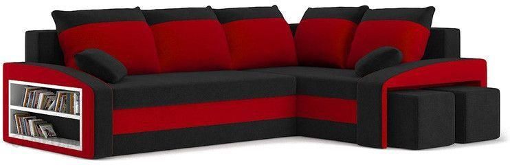 Duży narożnik, półka, pufy, prawy, Grande, 255x180x75 cm, czarny, czerwony. Zadbaj o kącik wypoczynkowy z komfortowym narożnikiemGrande! Nowoczesny narożnik z wypełnieniem piankowym świetnie sprawdzi się w dużym salonie lub pokoju dziennym, oszałamiając swoją estetyką. Klasyczna forma narożnika połączona z funkcjonalnymi rozwiązaniami technologicznymi w postaci podłokietników, luźnych poduszek i dużych pojemników na pościel będzie idealną ozdobą i jednocześnie miejscem spotkań z rodziną i przyjaciółmi.Najważniejsze cechy dużego narożnika:Nowoczesna konstrukcjaWysoka jakość wykonaniaInnowacyjne rozwiązanie kolorystyczneBardzo funkcjonalnyIdealne uzupełnienie każdego salonu i pokojuDwa pojemniki na pościelLuźne poduszki w zestawiePółka i pufy w podłokietnikuInstrukcja montażu w przesyłceMeble produkowane w PolsceSzeroka gama kolorystycznaSolidne wykonanie, trwałość na lataWymiary i specyfikacja:Szerokość: 255 cmWysokość: 75 cmGłębokość: 180 cmKonstrukcja mebla: drewno, płyta wiórowaWypełnienie: pianka poliuretanowaStrona: prawaSposób rozkładania: system rolkowySchowek na pościel: 2 pojemnikiRodzaj tkaniny: welur (1 grupa)Mebel wolnostojący: takFunkcja spania: takWymaga montażu: takTkanina:Tkanina z I grupy to tkanina MIKROFAZA, która wykonana jest z mikrowłókien. Jest to tkanina cienka, jednak charakteryzuje się dużą wytrzymałością. Tkanina ta jest przyjemna w dotyku, a swoją strukturą przypomina zamsz. Materiał nie cieniuje się pod wpływem dotyku.Właściwości tkaniny:Rodzaj: WelurGramatura: 185 g/m²Skład: 100% PESŚcieralność Test Martindale: 35 000Cechy: Certyfikat Oeko-TexWypełnienie:Jednym z najczęściej stosowanym wypełnieniem w branży meblarskiej jest wypełnienie piankowe. Wykorzystywana pianka w oferowanej kanapie to pianka poliuretanowa T30.Dodatkowe informacje:Meble należy czyścić za pomocą delikatnej ściereczki. Nie stosuj silnych środków myjących.Meble do samodzielnego montażu. W opakowaniu instrukcja montażu oraz wszystkie niezbędne elementy.