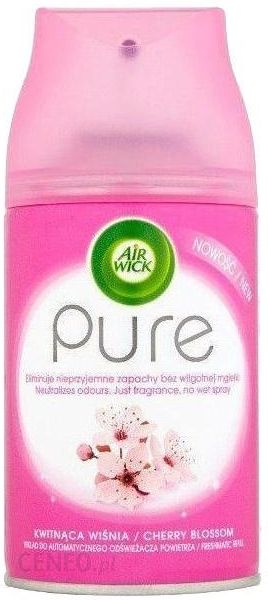Air Wick Freshmatic Pure wkład Kwitnąca Wiśnia przyjemny zapach kwitnącej wiśni eliminuje nieprzyjemne zapachy wkłady do automatycznego odświeżacza Zapachy inspirowane naturą Air Wick Pure odświeżacz powietrza w aerozolu o zapachu Kwitnąca Wiśnia. Eliminuje nieprzyjemne zapachy, jak dym papierosowy, nie tworząc wilgotnej mgiełki i nie zostawiając plam na powierzechniach, gdyż formuła Air Wick Pure nie jest oprata na wodzie. Dzięki bardziej skoncentrowanej kompozycji zapachowej możesz dłużej cieszyć się świeżym zapachem w swoim domu. Dodatkowym atutem produktu jest estetyczne i poręczne opakowanie. Dostępny w: 250 ml Uwaga! Powoduje podrażnienie skóry. Działa drażniąco na oczy. Może powodować reakcję alergiczną skóry. Działa toksycznie na organizmy wodne, powodując długotrwałe skutki. Przechowywać poza zasięgiem dzieci. Unikać kontaktu ze skórą i oczami. Nosić rękawiczki ochronne. W PRZYPADKU KONTAKTU ZE SKÓRĄ: Umyć dużą ilością wody. W PRZYPADKU DOSTANIA SIĘ DO OCZU: Ostrożnie płukać wodą przez kilka minut. Wyjąć soczewki kontaktowe, jeżeli są używane i można je łatwo usunąć. Kontynuować płukanie. W PRZYPADKU POŁKNIĘCIA: Natychmiast skontaktować się z OŚRODKIEM ZATRUĆ lub lekarzem. NIE wywoływać wymiotów. Osoby cierpiące na nadwrażliwość zapachową powinny zachować ostrożność przy stosowaniu tego produktu. Używanie odświeżaczy powietrza nie zwalnia z przestrzegania podstawowych zasad higieny.