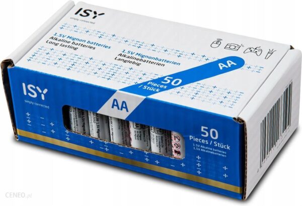 Baterie ISY AA 50 szt. IBA-2050Numer produktu: 1461720Zestaw 50 sztuk alkalicznych baterii AA.Typ: BateriaNapięcie [V]: 1.5Rodzaj: AlkalicznaSymbol: AA AM3 HP7 LR6 Mignon MN1500 UM3 15AWysokość [mm]: 50Szerokość [mm]: 50Średnica [mm]: 14.2Opakowanie: 50 sztukCena dotyczy: Opakowania