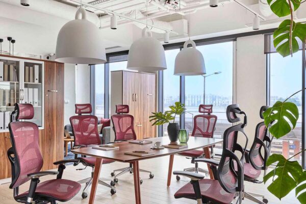 Stół konferencyjny EVOLUTIO E102. Wymiary: 200 x 100 x 75 cm. Materiał: blat wykonany z płyty MDF, nogi drewniane. Całość w kolorze orzecha amerykańskiego. Kolekcja biurowa Evolutio.
