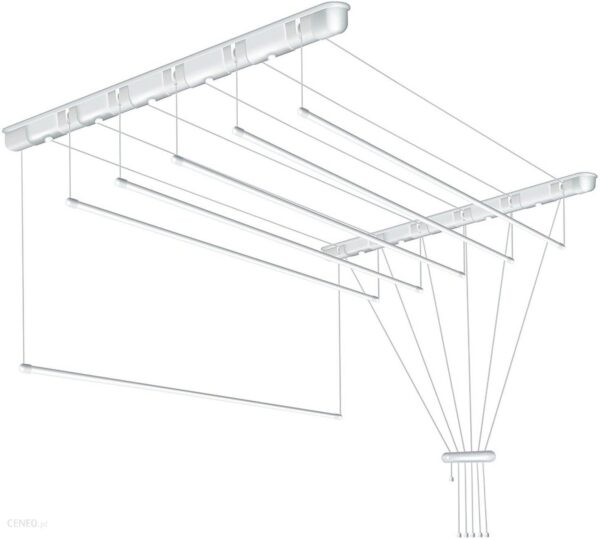 Suszarka sufitowa to niezwykle praktyczny produkt, który znajdzie zastosowanie podczas urządzania Twojej łazienki. Za jej pomocą samodzielnie stworzysz przestrzeń do suszenia odzieży w swoim mieszkaniu, co jest niezwykle przydatne w przypadku, kiedy nie masz dostępu do ogrodu lub balkonu oraz w czasie mroźnych zim. System sznurkowy umożliwia błyskawiczne obniżenie drążków z ubraniami, zatem masz do nich doskonały dostęp. Suszarka wykonana została ze starannie wyselekcjonowanych materiałów, dzięki czemu jest odporna na duże obciążenia oraz korozyjne działanie wody – produkt powstał bowiem ze stalowych rurek, polietylenu oraz polipropylenu. Suszarka łazienkowa marki Sepio jest przeznaczona do montażu na suficie, w pomieszczeniach o wysokości do 3 m. Dzięki unikalnemu systemowi suszenia ubrań, zyskujemy oszczędność miejsca, dlatego szczególnie polecana jest do małych łazienek, a także suszarni lub balkonów. Jest ona lekka i bardzo łatwa w montażu.Sznurki są już nawleczone na pręty.Pręty wykonane ze stali malowanej proszkowo nie brudzą ubrań.Dopuszczalne obciążenie pręta wynosi 1,5 kg.W naszej ofercie dostępne są także suszarki w mniejszych i większych rozmiarach, więc wybierzesz model idealnie pasujący do Twoich pomieszczeń.