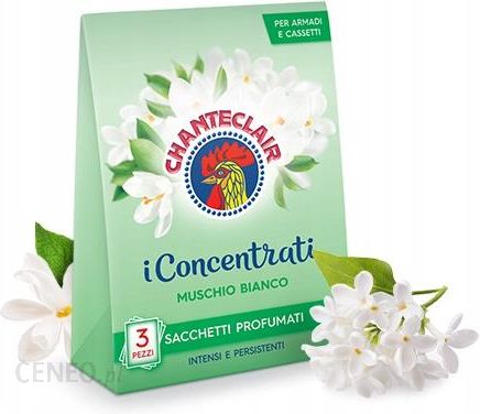 Chanteclair perfumowane saszetki zapachowe – Białe piżmo(3 sztuki w opakowaniu)Perfumowane saszetki zapachowe Chanteclair do garderoby nadają świeżo wypranej odzieży długo utrzymujący się zapach świeżości, nawet do 6 tygodni. Wewnątrz saszetki znajdują się perełki, które stopniowo uwalniają świeży zapach białego piżma.W celu maksymalizacji efektu:* zawiesić saszetki w szafie na załączonych do opakowania haczykach* włożyć saszetki do szuflady nie przykrywając ich ubraniami* wymieniać saszetki co 6 tygodni
