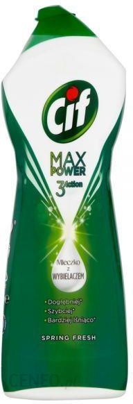 Jeśli szukasz środka do czyszczenia z wybielaczem, który usunie trudne zabrudzenia z jasnych powierzchni i zabezpieczy je, sięgnij po Cif Max Power Mleczko wybielające Spring Fresh. Dzięki niemu pozbędziesz się uciążliwego brudu zarówno na elementach w pomieszczeniach, jak i na zewnątrz domu.Mleczko do czyszczenia zawiera aktywny chlor, dzięki czemu jego formuła pomoże usunąć nawet najcięższe zabrudzenia. Środek dedykowany jest do użycia na wszelkich jasnych powierzchniach. W łazience sprawdzi się podczas czyszczenia wanny, umywalki oraz prysznica. Rozprawi się z kamieniem i osadami z twardej wody. W kuchni będzie walczyć z zaschniętym tłuszczem, przypaleniami, a nawet pleśnią. Cif Max Power Mleczko wybielające warto zabrać ze sobą, także jeśli masz w planie sprzątanie na zewnątrz domu. Przykładowo wyczyści jasne plastikowe meble ogrodowe. Wszystkie powierzchnie pozostawi błyszczące. Nie spowoduje powstania smug i zacieków. Co niezwykle istotne, nie rysuje elementów. Wyczyszczone powierzchnie pachną przyjemnie i świeżo.Aby użyć mleczka wybielającego, wyciśnij je na mokrą szmatkę lub od razu na czyszczony element. Następnie przetrzyj go starannie. Jeśli zabrudzenie jest wyjątkowo silne, odczekaj chwilę. Na koniec dokładnie spłukaj wodą. Powierzchnia będzie lśnić!Jeśli chciałbyś, by wyczyszczone powierzchnie pachniały cytrusowo, sięgnij po Cif Max Power Mleczko wybielające Citrus Harmony. Idealna czystość bez smug, doskonały blask i niezwykle przyjemny zapach!Cif Max Power Mleczko wybielające Spring Fresh skutecznie czyści trwałe zabrudzenia z białych powierzchni, pozostawiając je czyste i błyszczące.Mleczko do czyszczenia ma właściwości wybielające.Formuła zawierająca aktywny chlor powoduje, że łatwo usuwa nawet trwałe zabrudzenia w łazience, kuchni, w ogrodzie i na zewnątrz domu, takie jak osady z wody, przypalony tłuszcz, plamy z pleśni.Pielęgnuje czyszczone powierzchnie, nie powodując zarysowań.W celu użycia, nanieś mleczko na wilgotną szmatkę lub bezpośrednio na powierzchnię, przetrzyj i starannie spłukaj wodą.Świeży wiosenny zapach sprawi, że czyszczone powierzchnie długo pozostaną pachnące.Skład: <5% anionowe środki powierzchniowo czynne, związki wybielające na bazie chloru, niejonowe środki powierzchniowo czynne, mydło, kompozycja zapachowa.Przechowywać w temperaturze otoczenia.