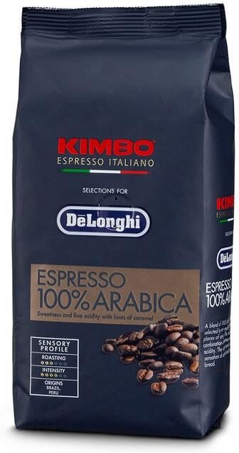 Poczuj tę magię w swoim domu! DeLonghi Kimbo 100% Arabica to mieszanka 100% ziaren kawy Arabica, wyselekcjonowanych poprzez specjalistów Kimbo z najszlachetniejszych upraw świata to gwarancja nieprzeciętnej filiżanki kawy, o pełnej intensywności i bogatym aromacie.Olśniewa niuansami – lekko owocowym i kwiatowym posmakiem, nutami miodu i tytoniu i delikatnym posmakiem świeżo pieczonego chleba i karmelu. Jedna filiżanka Arabiki gwarantuje bogactwo doznań, eksplozję aromatów i porządną dawkę energii,łatwo zmierzyć się z wyzwaniami codzienności.Pochodzenie Mieszanka Arabiki z Brazylii i Peru, to naturalne, szlachetne ziarna, pełne smaku, aromatu i słodyczy. Dzięki dodatkowemu etapowi przetwarzania, w trakcie którego ziarna z Peru pozostają w zbiornikach z wodą przez około trzy dni, zachodzi cykl fermentacji, który zmienia smak kawy, czyniąc ją świeższą i wyróżniając naturalną kwasowość i wyjątkowy zapach.