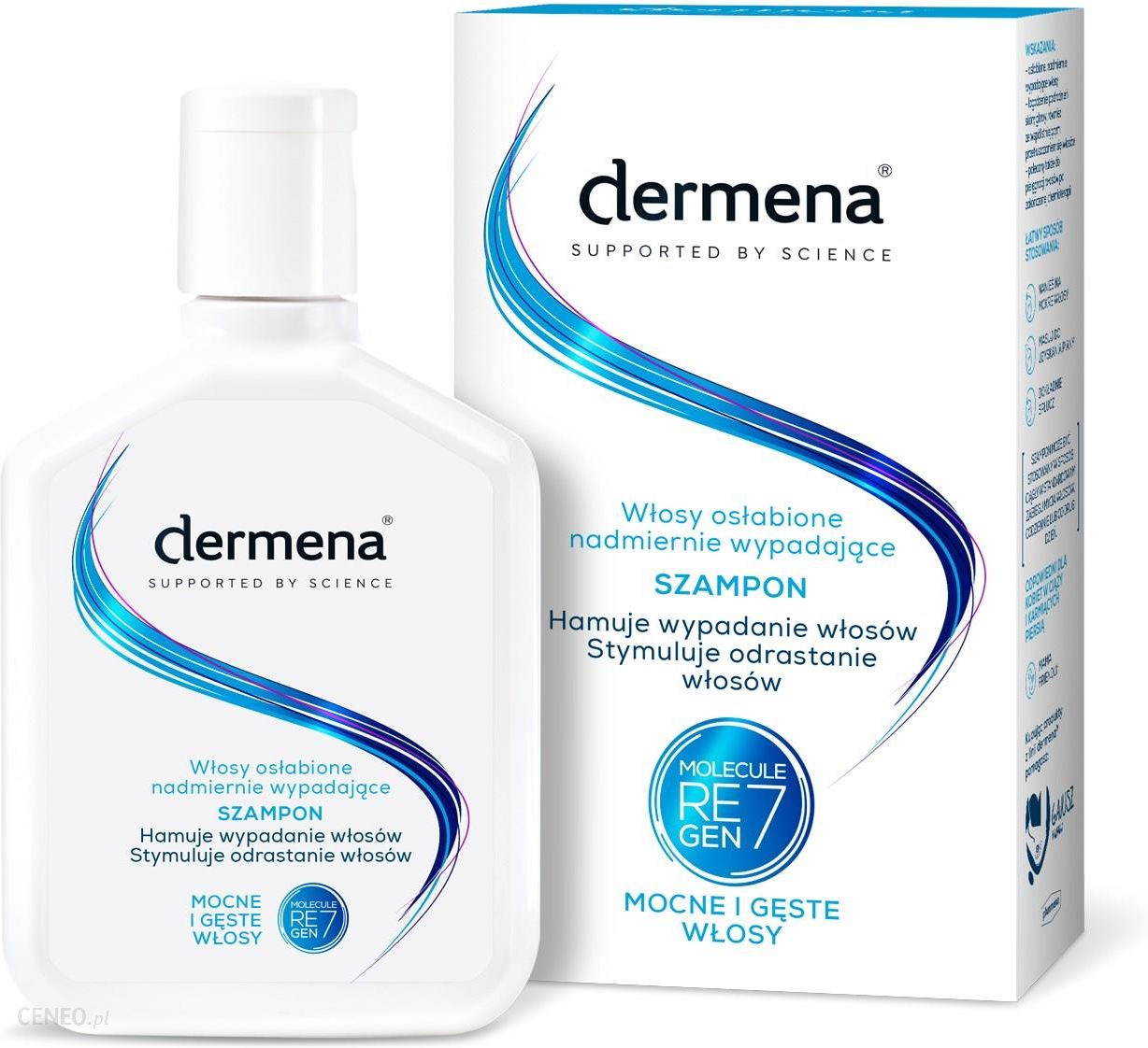 Szampon dermena®, dokładnie myje skórę głowy i znakomicie pielęgnuje włosy. Dzięki zastosowaniu unikalnej substancji czynnej pochodzenia witaminowego (molekuły REGEN7), hamuje wypadanie włosów i stymuluje proces ich odrastania. Chroni skórę głowy przed powstawaniem podrażnień. Po jego zastosowaniu włosy stają się mocniejsze, a skóra głowy odzyskuje naturalną równowagę. Szampon nie obciąża włosów.