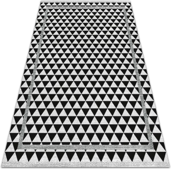Dywan PCV warto wykorzystać także jako dekorację tarasu, balkonu czy ogrodu. W tym sezonie dodatki do wystroju wnętrz stały się modne. Warto wykorzystać ten trend do stworzenia oryginalnego wnętrza. Dywan winylowy Czarno białe trójkąty jest atrakcyjnym dodatkiem aranżacji wnętrz ze względu na swoje unikalne właściwości. Jest bezpieczny dla osób wrażliwych i alergików, nie podrażania, nie uczula. W tym sezonie modny jest styl boho, w który świetnie wpisze się dywan winylowy w kwiatowe wzory.