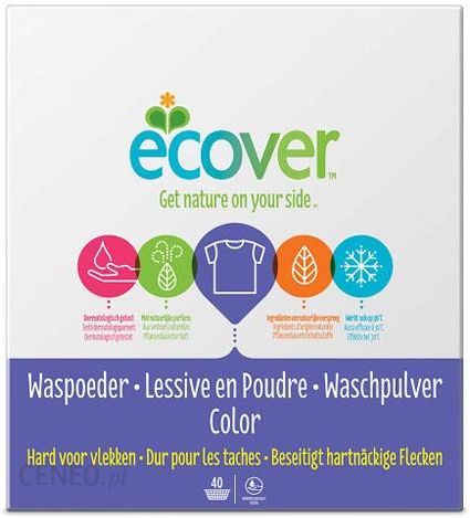 Proszek do prania tkanin kolorowych. Biodegradowalna formuła proszku nie zanieczyszcza ekosystemów. Można prać nim nawet w niskich temperaturach.Skład: 5-15%: zeolit, anionowe środki powierzchniowo czynne, niejonowe środki powierzchniowo czynne; <5%: mydło, aromat (limonen, linalol), enzymy; inne: węglan sodu, siarczan sodu, wodorowęglan sodu, polipeptyd Poly Itaconate, woda, dwukrzemian sodu, karboksymetylo skrobia, guma celulozowa.Warunki przechowywania: Przechowywać poza zasięgiem dzieci. Unikać kontaktu z oczami. W razie kontaktu z oczami przemyć od razu dużą ilością wody i zgłosić się do lekarza.Pochodzenie: BelgiaOpis producenta:Belgijski Ecover to jedna z najstarszych europejskich marek produkujących przyjazne dla środowiska środki czystości. Produkty Ecover powstają przede wszystkim z naturalnych roślinnych i mineralnych substancji czyszczących. Marka opracowała też substancję myjącą na bazie drożdży. Wyroby Ecover wolne są od fosforanów, fosfonianów, optycznych wybielaczy, pierwiastków z grupy chlorowców oraz organizmów modyfikowanych genetycznie. Ecover redukuje swój ślad węglowy dzięki pozyskiwaniu większości surowców z lokalnych źródeł i niestosowaniu transportu lotniczego. Od 2011 roku produkty pakowane są w biodegradowalne, plastikowe opakowania wytworzone z trzciny cukrowej, co również pozwala zredukować emisje dwutlenku węgla. Ponadto, Ecover jest członkiem inicjatywy wielostronnej Roundtable on Sustainable Palm Oil (RSPO – Okrągły Stół na rzecz zrównoważonych upraw palm olejowych), której celem jest wdrażanie bardziej odpowiedzialnych wobec ludzi i środowiska metod produkcji oleju palmowego (monokultury palmy olejowej przyczyniają się m.in. do wylesiania lasów pierwotnych). Surowiec ten stanowi bazę wielu środków czyszczących. W ofercie Ecover znajdują się m.in. produkty do czyszczenia, tabletki do zmywarek, płyny i proszki do prania.