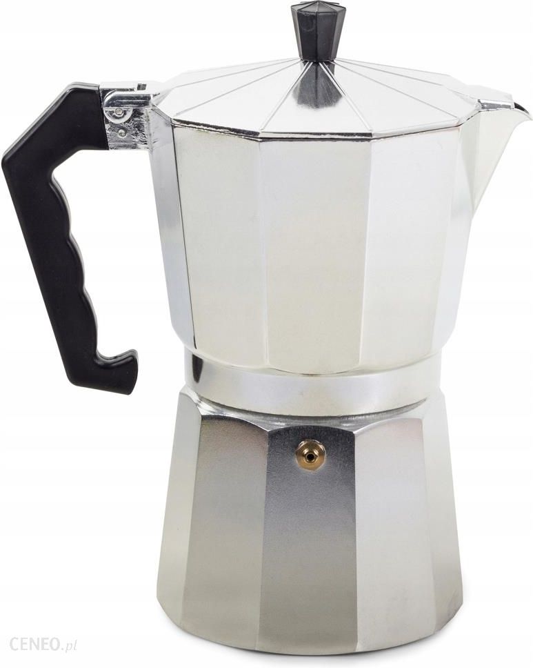 Kawiarka zaparzacz do kawy 6 kaw 300ml aluminiowaKAWIARKA ZAPARZACZ KAWY6 FILIŻANEKKawiarka wykonana jest w całości z wysokiej jakości aluminium, dzięki czemu jest lekka i wytrzymała. Przystosowana do kuchenek: gazowych oraz elektrycznych.Dzięki swej pojemności, ok. 300ml można zaparzyć 6 filiżanek kawy.Kawiarka składa się z trzech części:Dolnego zbiornika na wodę z ciśnieniowym zaworem bezpieczeństwaLejka z sitkiem na zmieloną kawęGórnego zbiornika na gotową kawęSposób zaparzania kawy:Do dolnego zbiornika nalewamy wodę, poniżej poziomu zaworu bezpieczeństwaUmieszczamy sitko do dolnego zbiornikaSitko napełniamy zmieloną kawę nie ubijając jejDokręcamy szczelnie górny pojemnik zaparzacza przed gotowaniemCałość po skręceniu stawiamy na kuchenkęGdy z otworu w dolnym zbiorniku zacznie wydobywać się para, kawiarkę zdejmujemy z kuchenkiCzas zaparzania około 5 minutSpecyfikacja techniczna:Wykonana z wysokiej jakości aluminium, dzięki czemu jest lekka i wytrzymałaPojemność: około 300ml na 6 filiżanekSolidne wykonaniePrzystosowana do kuchenek gazowych oraz elektrycznychPosiada wygodną ergonomiczną rączkęUchwyt wykonany z tworzywa zapobiega poparzeniu sięWysokość: 16,5cmŚrednica górna: 10cmŚrednica postawy: 9cmUWAGA! Zabrania się zakręcania/odkręcania kawiarki trzymając za ucho, ponieważ może dojść do jego ułamania.Zestaw zawiera:Fabrycznie nową kawiarkęOryginalne opakowanie
