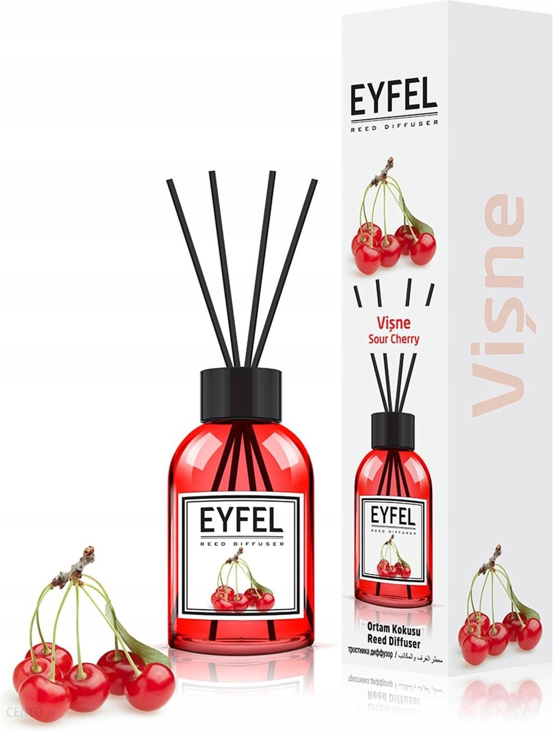 Zmysł węchu jest pierwszym zmysłem, który uruchamiamy kiedy znajdziemy się w nowym dla nas środowisku. To jakie będzie nasze pierwsze wrażenie stanowić będzie ogromne znaczenie w odbiorze nowego miejsca oraz utrwali się w naszej pamięci zapachowej.Nasze odświeżacze to unikatowa kompozycja, która wniesie do Twojego otoczenia piękny zapach i wypełni je po same brzegi.Mają również działanie praktyczne, usuwają i niwelują przykre zapachy z otoczenia.Odświeżacz powietrza z patyczkami 110 ml EyfelWIŚNIAOdświeżacz powietrza w formie patyczków.Patyczki zapachowe to nie tylko odświeżacz powietrza, ale też element dekoracyjny. Dzięki nowoczesnej formie wpasowuje się w wystrój wnętrza.Zmysłowy zapach zamknięty został w ekskluzywnej butelce. Emituje cudowny aromat dzięki zastosowaniu patyczków zapachowych.Elegancki biały kartonik z czarnymi patyczkami to wspaniały prezent do nawet najbardziej eleganckiego pomieszczenia.Olejek zapachowy został wysoce zaperfumowany intensywnym i długotrwałym zapachem. W zależności od wilgotności powietrza oraz temperatury utrzymuje się od 3-6 tygodni.Kategoria zapachu: wiśniowy, owocowyPojemność: 110 mlSposób użycia: zdejmij zawleczkę oraz umieść patyczki wewnątrz butelki z płynem. Im więcej patyczków tym zapach intensywniej uwalnia się do otoczenia.