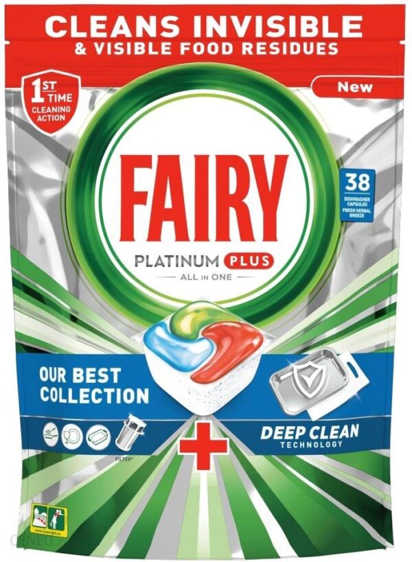 Fairy Blue Platinium – kapsułki do zmywarkiKapsułki do zmywarki All In One Fairy Platinum Plus sprawiają, że naczynia stają się lśniąco czyste. Zapewniają niesamowitą moc Fairy i usuwają nawet nagromadzony z czasem osad, przywracając pierwotny blask naczyń. Fairy Platinum Plus wyróżnia system m
