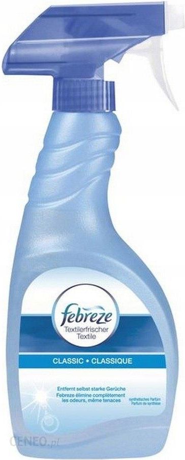 Febreze Odświeżacz do Tkanin Spray, 500 mlIMPORTOdświeżający spray do odzieży, zasłon, dywanów, tapicerki, kanap . Likwiduje przykre zapachy i nadaje świeżość wszelkim tkaninom. Przebadany dermatologicznie. zapach świeżo wypranych rzeczy.Febreze Classic jest tak skuteczne, ponieważ każda cząsteczka neutralizuje zapach. Efektem jest wyjątkowe poczucie świeżości, korzystają z wielu ludzi na co dzień.Febreze Classic jest wolne od agresywnych środków chemicznych i dlatego jest całkowicie bezpieczny dla dzieci i zwierząt.