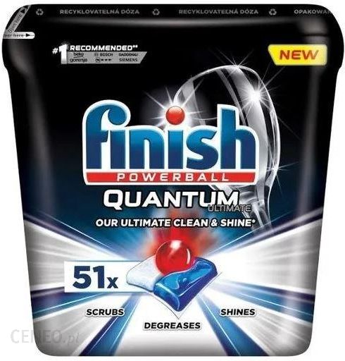 Finish Kapsułki Quantum Ultimate 51 Regularne – Czyste naczynia to naczynia umyte z kapsułkami Finish. Dopiero po zastosowaniu mocy nowego Finish Quantum Ultimate możesz przekonać się co tak naprawdę oznacza czystość i blask! 3 oddzielne komory nowej kapsułki do zmywania Finish, zapewniają moc czyszczenia, która poradzi sobie z zaschniętymi resztkami jedzenia pozostałym na naczyniach! Zaawansowana formuła proszku eliminuje najbardziej uporczywe plamy jak osad z kawy czy herbaty. Wzbogacona o nowe składniki formuła Powerball zwiększa moc tabletki, zapewniając doskonałą czystość oraz olśniewający blask naczyń.