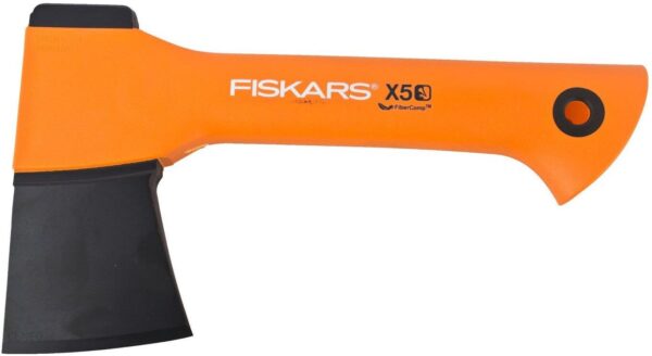 Siekiera ciesielska X5 XXS, marki Fiskars to praktyczne narzędzie o kompaktowych rozmiarach. Antypoślizgowy chwyt zapewnia wygodę i bezpieczeństwo użytkowania. Siekiera bardzo dobrze sprawdzi się zarówno w pracach ciesielskich jak i na kempingu oraz w podróży.