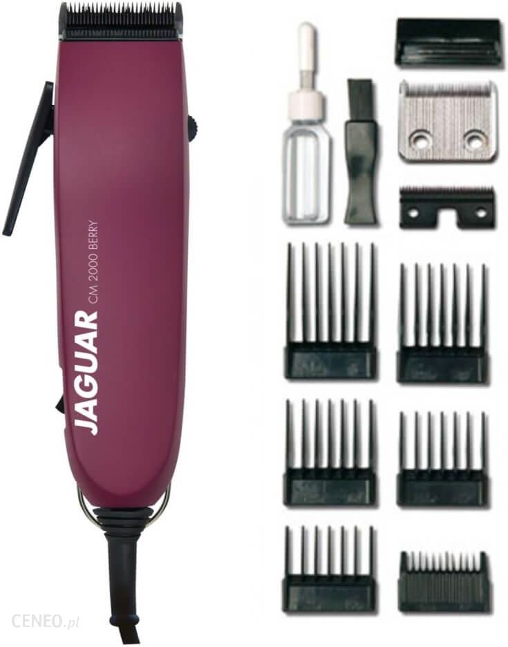 Maszynka do strzyżenia włosów JAGUAR CM 2000 BERRY – efektowny wygląd połączony z funkcjonalnościąŚcinanie włosów w domowych warunkach niesie za sobą wiele korzyści, a jedną z nich jest oczywiście oszczędność pieniędzy. Wystarczy jedynie zainwestować w zakup odpowiedniego sprzętu. Efektywność pracy i zadowolenie z zakupu zagwarantuje Ci maszynka fryzjerska do strzyżenia włosów JAGUAR CM 2000 BERRY. Urządzenie nie tylko świetnie wygląda, co stanowi zasługę jego przepięknego, wiśniowego koloru, ale też niezawodnie działa, ułatwiając wykonywanie każdego z ruchów, przybliżając użytkownika do uzyskania zamierzonych efektów. Maszynka JAGUAR CM 2000 jest precyzyjnie wykonania, a także wytrzymała, a jej długa żywotność pozwoli Ci korzystać z niej przez wiele lat.Sześć nakładek dystansowych w zestawie z maszynką JAGUAR CM 2000Proponowana przez nas maszynka fryzjerska do strzyżenia JAGUAR CM 2000 BERRY posiada ostrze załączone do trymera, wykonane ze stali szlachetnej, którego szerokość wynosi 46 mm. Jego perfekcyjne wykonanie gwarantuje bezproblemowe ścinanie każdego rodzaju włosów. Długość cięcia bez nakładek to 1-2 mm. Dokonując zakupu sprzętu, otrzymasz również sześć nakładek dystansowych i olejek wraz ze szczoteczką, dzięki którym łatwo utrzymasz go w czystości. Pamiętaj również o tym, że maszynka JAGUAR CM 2000 świetnie trzyma się dłoni za sprawą swojego kształtu i nie obciąża jej, ponieważ waży jedynie 460 g.Ostrze załączone to trymera wykonane jest ze stali szlachetnej i ma ono szerokość 46 mm.Jest ono perfekcyjnie wykonane oraz idealnie ostre!Zakres długości cięcia bez nakładek to 1,0 – 2,0 mm, a dzięki umieszczonym po bokachurządzenia dźwigience i przyciskowi blokady można ustawić ostrze na długości:1,0; 1,2; 1,4; 1,6; 1,8 i 2,0 mmW komplecie z urządzeniem znajduje się nakładek dystansowych o długości:3, 6, 9, 12, 19 i 25 mm.Jako urządzenie jest ono bardzo ciche.Posiada ergonomiczny kształt, dzięki czemu będzie wygodnie leżał w dłoni.Wersja Berryto elegancka maszynka pasująca do każdego wnętrza.Gwarancja 24 miesięczna.Specyfikacja:- urządzenie jest przewodowe – zasilanie sieciowe- ostrze ze stali szlachetnej- szerokość ostrza: 46mm- silnik z dwustronnym elektromagnesem- ciągły czas pracy- waga 460 g (bez kabla)- długość kabla: 2,8 m- 6 nakładek: 3, 6, 9 , 12, 19, 25 mm- moc: 10 W- model: 85608