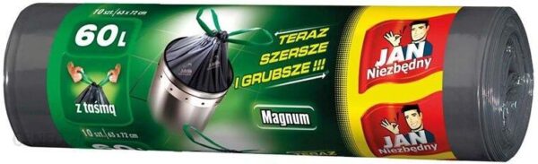 Worki na śmieci Jan Niezbędny Magnum o pojemności 60 l wykonano z grubej, dwuwarstwowej, nieprzezroczystej folii koloru grafitowego.Wykończone praktyczną, zieloną taśmą ściągającą, która pozwala na łatwy transport pełnego worka.Doskonale sprawdzają się w przechowywaniu różnego rodzaju odpadów pochodzących z gospodarstwa domowego.