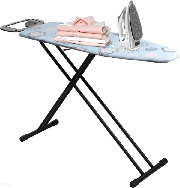 DESKA DO PRASOWANIA Z UCHWYTEM NA ŻELAZKO 120x38cmSzukasz stabilnej deski, która ułatwi prasowanie? Przedmiotu, który znacznie skróci czas wykonywania tej czynności? Nasza solidna deska do prasowania spełni Twoje wymagania!Stabilna konstrukcja z antypoślizgowymi stopkami zapewni Ci wysoki komfort użytkowania. A spora powierzchnia użytkowa i funkcjonalne dodatki uczynią prasowanie przyjemnością. Co więcej, deska posiada możliwość regulacji, dlatego z łatwością dostosujesz ją do wybranej wysokości – nawet 90 cm! Wybierając naszą deskę, nie pożałujesz tej decyzji!Składana deska z regulacją, dzięki której swobodnie dostosujesz wysokość✅DUŻA POWIERZCHNIA PRASOWANIA – deska do prasowania wyposażona jest w perforowanyblat o wymiarach 120x38cm, która zapewnia lepszy przepływ pary. Duża powierzchnia daje możliwość dokładnego prasowania koszul, swetrów i innych większych elementów odzieży.✅DWUWARSTWOWY POKROWIEC – duża deska do prasowania posiada pokrowiec wykonany z dwóch warstw – 100 % bawełny oraz 8 mm podszycia z pianki. Pokrowiec jest zdejmowany, dlatego w razie potrzeby można go wyprać.✅REGULACJA WYSOKOŚCI – solidna deska do prasowania może być dowolnie regulowana dzięki specjalnemu mechanizmowi w stelażu. Jej maksymalna wysokość może osiągnąć nawet 90 cm, co ułatwia użytkowanie każdemu domownikowi.✔️SPECYFIKACJA:Deska do prasowaniaMateriał: stal, blat z chromowanej siatkiWymiary blatu: 120 x 38 x 2 cmWymiary deski po rozłożeniu: 160 x 40 x 90 cmWymiary deski po złożeniu: 160 x 40 cmRegulacja wysokości: 78 – 90 cmKolor: wielokolorowy, czarnyWaga: 4,9 kg✅UWAGA: Wzór pokrowca może różnić się od tego w aukcji. Pokrowce są wysyłane losowo.Stabilna deska z uchwytem na żelazko, która ułatwi prasowanie✅ANTYPOŚLIZGOWE NAKŁADKI – konstrukcja nóg deski z antypoślizgowymi nakładki sprawia, że przedmiot nie chwieje się pod wpływem nacisku. Dzięki temu możesz sprawniej prasować ubrania, nie martwiąc się o stabilność deski.✅ŻAROODPORNA PODSTAWKA POD ŻELAZKO – stabilna deska jest wyposażona w żaroodporną podstawkę pod żelazko, która pozwoli bezpiecznie odłożyć urządzenie podczas prasowania. Podstawka posiada praktyczny uchwyt, na którym zawiesisz wieszaki z ubraniami.✅NIEWIELKA WAGA -deska waży 4,9 kg, dlatego nie sprawi problemu w składaniu, rozkładaniu i przenoszeniu. Po złożeniu nie zajmie dużo przestrzeni, dlatego możesz ją swobodnie umieścić w ciasnych kątach pralni, łazienki, salonu czy kuchni.Nie zwlekaj: sięgnij po solidną deskę i ułatw sobie prasowanie!