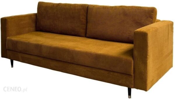 Cenisz nowoczesne aranżacje i marzysz o stylowym wystroju swojego wnętrza? Kanapa Bazzano będzie doskonałym wyborem! Szykowna, trzyosobowa bryła została oparta na drewnianych nóżkach w czarnym kolorze, ozdobionych złotym dekorem. Dzięki temu całość zyskała klasę w stylu glamour, co z pewnością zachwyci wszystkich Twoich gości. Praktyczne podłokietniki zapewniają wygodne podparcie dla rąk, a tapicerowany tył pozwala ustawić mebel w dowolnej części pokoju. Bazzano posiada funkcję spania oraz automatyczny mechanizm ułatwiający szybką przemianę w wygodne łóżko o obszernej powierzchni. Pojemnik na pościel pozwoli Ci zaś przechować najbardziej przydatne tekstylia. Szczegóły produktu: wysokość oparcia bez poduch: 73 cm, szerokość oparcia: 200 cm, wysokość podłokietników: 61 cm, szerokość podłokietników: 15 cm, głębokość podłokietników: 96 cm, gęstość pianki w siedzisku oraz oparciu: T-30, pojemny schowek na pościel, zdejmowane poduszki oparciowe, wygodne podłokietniki, tapicerowany tył, który