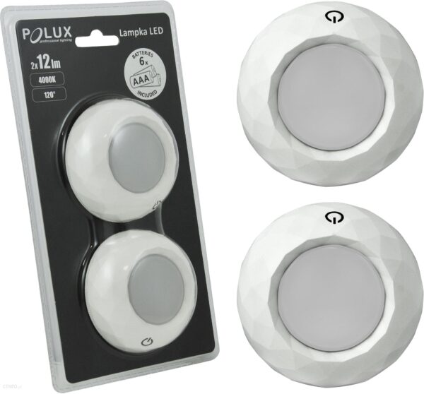 Podszafkowa lampka LED firmy POLUX sprzedawana jest po dwie sztuki w zestawie. Biały kolor produktu sprawia, że wszędzie elegancko się prezentuje. Lampka podszafkowa LED zasilana jest na trzy baterie 4,5V AAA, które dołączone są do zestawu. Lampka LED firmy POLUX emituje neutralną barwą światła, której temperatura barwowa wynosi 4000K, a jej znamionowy strumień świetlny jest równy 12 lumenów. Produkt posiada wyłącznik dotykowy on/off, a jego wymiary to: 7,5 x 7,5 x 2,5 cm. Stopień odporności lampki podszafkowej to IP20.Materiał – tworzywo sztuczneStrumień świetlny (lm) – 12lmTemperatura barwowa (K) – 4000K (naturalna biała)Kąt świecenia – 120°Stopień ochrony – IP20Kolor – biały