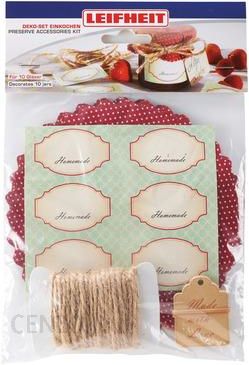 Co może być piękniejszego niż własnoręcznie zrobiony prezent – troskliwie zapakowany i atrakcyjnie ozdobiony? Dekoracyjny zestaw do wekowania Leifheit oferuje w jednym zestawie wszystko co jest potrzebne aby zamienić dżem domowej roboty w pięknie zapakowany podarunek. Samoprzylepne dekoracyjne etykiety stylowo prezentują zawartość – i można je usuwać bez pozostawiania śladów. Kartka na życzenia oferuje miejsce na napisanie życzeń lub osobistych pozdrowień dla obdarowanej osoby. Pokrywka słoików znika pod atrakcyjną serwetką w kropki którą można zamocować w niewidoczny sposób za pomocą gumek i na koniec ozdobić sznurkiem z naturalnego włókna. Domowych wyrobów nie da się wręczyć w piękniejszy sposób. Zestaw dekoracyjny zawiera 10 samoprzylepnych etykiet 10 kartek na życzenia 10 serwetek z bawełny z karbowaną krawędzią 10 gumek do mocowania i 1 sznurek z włókna naturalnego do cięcia.
