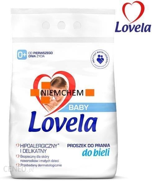 LOVELA Baby Hipoalergiczny proszek do prania białego dla dzieci 2,7 kg (27 prań) Zalety produktu:• hipoalergiczny i delikatny• od pierwszego dnia życia• do ubranek białych• pozytywna opinia Instytutu Matki i Dziecka• przebadany dermatologicznie, testowany klinicznie• bez dodatku sztucznych barwników, alergenów i fosforanów• bezpieczny dla skóry noworodków i małych dzieci• odpowiednie dla alergików• delikatny, niedrażniący zapach• do prania automatycznego i ręcznego oraz namaczania Opis:Hipoalergiczny proszek do bieli Lovela Baby white, o składzie opracowanym specjalnie z myślą o bardzo wrażliwej skórze. Wybierając środki piorące do ubranek dziecięcych należy kierować się przede wszystkim bezpieczeństwem maleństwa, dlatego formuła Loveli została przebadana dermatologicznie i uzyskała pozytywną opinię Instytutu Matki i Dziecka. Doskonały do prania ubranek noworodka oraz do prania pieluszek i bielizny dziecięcej, a także ubrań całej rodziny.Rekomendowany również dla osób dorosłych z wrażliwą skórą, skłonnościami do alergii oraz z AZS (atopowym zapaleniem skóry). W czym prać ubranka niemowlaka?Jako Mama masz wiele wyborów przed sobą. Nie musisz dodatkowo zastanawiać się jaki proszek dla dzieci wybrać. Tworząc produkty Lovela Baby pamiętaliśmy o tym, że będą przeznaczone dla kogoś, kto jest całym Twoim światem. Możesz je stosować od pierwszych dni życia bez obaw o stan wrażliwej, niemowlęcej skóry. Zawierają jedynie niealergizujące substancje, aby Twój maluszek miał poczucie najwyższego komfortu. Delikatny zapach sprawia, że Ty i Twoje dziecko będziecie chcieli wtulać się w uprane ubranka. „Skóra niemowląt i małych dzieci jest bardzo delikatna i łatwo ulega podrażnieniom. Dlatego polecam rodzicom hipoalergiczne środki do prania Lovela, które są bezpieczne dla maluszka już od pierwszego dnia życia. Aby w pełni chronić wrażliwą skórę maluszka, stosuj je do 3 roku życia.”dr Lidia Ruszkowska, lekarz medycyny, specjalista dermatolog Dlaczego mam wybrać Lovelę Baby do prania ubranek niemowlęcych?• Hipoalergiczna• Numer 1 w Polsce*• Testowana klinicznie – bezpieczna już od pierwszego dnia życia• Łagodność potwierdzona badaniami dermatologicznymi• Uzyskała pozytywną opinię Instytutu Matki i Dziecka• Polecane również dla osób ze skłonnościami do alergii• Skutecznie usuwa zabrudzenia• Dobrze się wypłukuje• Nie zawiera sztucznych barwników, fosforanów i alergenów• Wydajna w użyciu dzięki skoncentrowanej formule• Ubranka po praniu pozostają miękkie i przyjemne w dotyku• Bezpieczny dla tkanin Stosowanie:Tkaniny posortuj według zabarwienia i stopnia zabrudzenia.Przed praniem pieluszek spłucz zanieczyszczenia zimną wodą.Silnie zabrudzone pieluszki oraz odzież na 30 minut przed praniem namocz w wodzie z proszkiem.W przypadku prania pieluszek i bielizny niemowlęcej powtórz program płukania.Przestrzegaj zaleceń producentów odzieży.