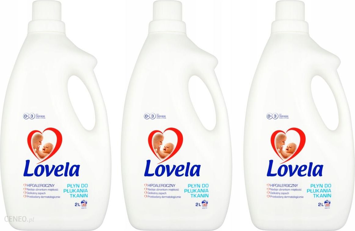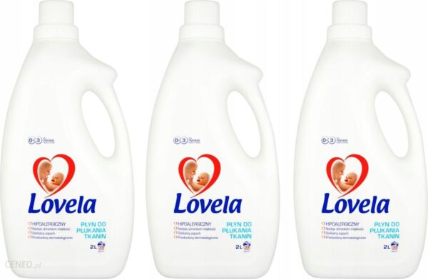 Lovela HIPOALERGICZNY Płyn do Płukania dla Dzieci i Niemowląt zestaw 6LKod produktu: ZEST-LOVELA02najlepszy do trzeciego roku życia,nadaje ubrankom miękkość,delikatny zapach,przebadany dermatologicznie,pozytywna opinia – Instytut Matki i Dziecka.Skóra niemowląt i małych dzieci jest bardzo delikatna i łatwo ulega podrażnieniom. Dlatego polecamy rodzicom hipoalergiczne środki do prania Lovela, które są bezpieczne dla maluszka już od pierwszego dnia życia.Dlaczego warto stosować produkty Lovela?hipoalergiczny – skład opracowany specjalnie z myślą o nawet bardzo wrażliwej skórze,testowany klinicznie – bezpieczny nawet dla noworodków już od pierwszego dnia życia,może być stosowany przez osoby z alergiami i chorujące na AZS (atopowe zapalenie skóry),skutecznie usuwa zabrudzenia,nie zawiera wybielaczy optycznych i enzymów,nie zawiera sztucznych barwników i alergenów,dobrze się wypłukuje,ma delikatny, neutralny zapach,łagodny dla skóry rąk,przeznaczony do prania zarówno w pralkach automatycznych, jak i do prania ręcznego oraz namaczania.