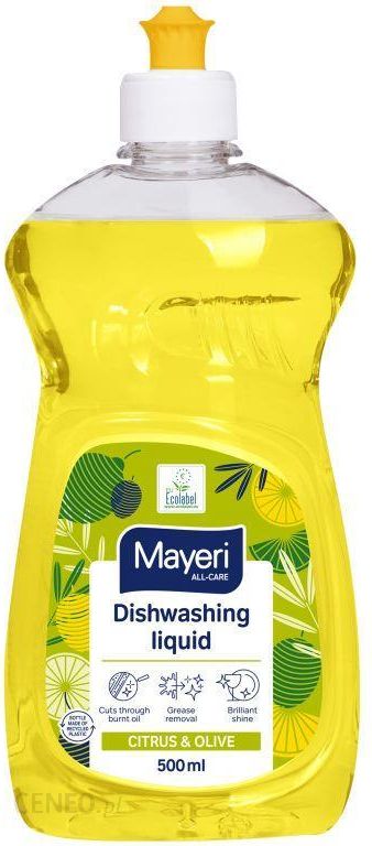 Płyn do mycia naczyń o zapachu cytrynowym. Skutecznie usuwa tłuszcz i brud, nawet w chłodnej lub twardej wodzie. Nadaje naczyniom połysk. Nie wysusza rąk nawet przy częstym zmywaniu. Produkt wegański. Opakowanie zostało wykonane z materiałów pochodzących z recyklingu i nadają się do recyklingu. Produkty Mayeri są bezpieczne i przyjazne dla środowiska naturalnego, certyfikowane przez wspólnotowe oznakowanie ekologiczne Ecolabel.