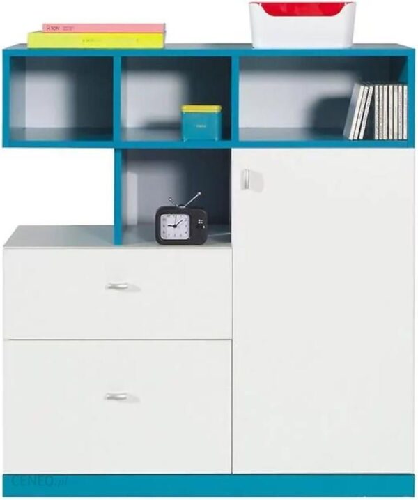 System LOGO wykonany został z płyty laminowanej w 2 wariantach kolorystycznych. Zestawienia tych kolorów umożliwiają zaprojektowanie idealnego pomieszczenia zarówno młodszych jak i starszych dzieci. Technologia jaka została użyta podczas produkcji znacznie podnosi trwałość mebli. Obrzeże wykończone okleiną ABS. Meble w paczkach do samodzielnego montażu. Do mebli dołączamy instrukcję oraz wszystkie niezbędna akcesoria. Czas realizacji zamówienia wynosi do 21 dni roboczych. Dostępna kolorystyka: Biały Lux / Turkus Biały Lux / Żółty DANE TECHNICZNE: Szerokość: 90 cm Wysokość: 100 cm Głębokość: 40 cm