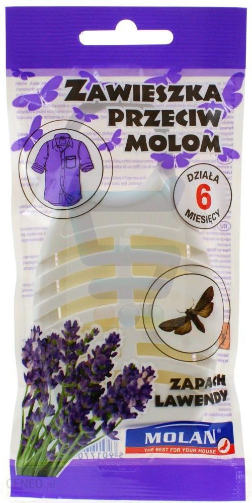 Produkt w postaci zawieszki nasączonej substancją czynną przeznaczony do skutecznego zwalczania moli odzieżowych. Szczególnie polecany do stosowania w garderobach, szafach , szufladach, skrzyniach. Zawieszka o przyjemnym, lawendowym zapachu działa przez około 6 miesięcy. Jedna zawieszka powinna być stosowana na 1m3. Pełny efekt biobójczy następuje po 7-14 dniach.