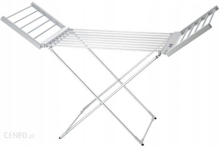 Cechy produktu: Szybkie oraz skuteczne suszenie niezależnie do pory roku i pogody Element grzejny to elektryczna grzałka o mocy 220W wbudowana we wszystkie rurki Plastikowe stopki zabezpieczające podłogę Kompaktowe rozmiary – po złożeniu idealnie nadaje się do przechowywania w małych pomieszczeniach Wykonana z lekkiego aluminium i solidnego tworzywa Możliwość używania jako tradycyjna suszarka Wbudowany minutnik do kontroli czasu pracy3 stopnie regulacji temperaturyWymiary: 148 x 52,5 x 90 cm