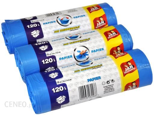 Cechy produktu:wykonane z tworzywa sztucznego,są wytrzymałe,zawiązywane,przeznaczone są do segregacji odpadów z papieru,na jednej rolce znajduje się 10 worków,specjalna wzmocniona konstrukcja spodu powoduje, że są jeszcze bardziej wytrzymałe,Wymiary worka:Długość – 116,5 cmSzerokość – 70 cmPojemność – 120 litrówUwaga: cena dotyczy 3 rolek worków po 10 szt w każdej tj. łącznie 30 sztuk worków.
