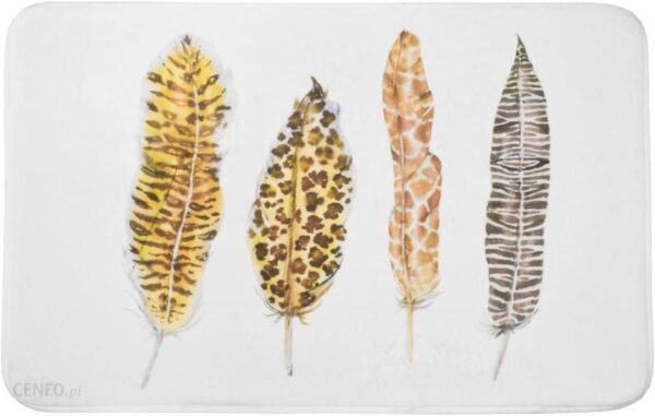 Dywanik Łazienkowy flanelowy z nadrukiem w białym kolorze w motywie jesiennych liści, tył dywanika z materiału PVC.