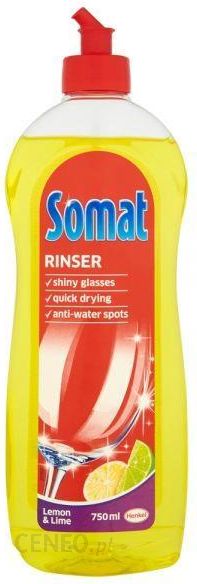 Informacje z opakowania i dane o zawartości produktu : Somat Lemon & Lime Płyn nabłyszczający do zmywarek 750 mlPłyn nabłyszczający do zmywarek o zapachu cytrynowym nie pozostawia smug i zapewnia nieskazitelny połysk naczyń.Regularnie wlewaj płyn do właściwego zbiorniczka w zmywarce. Zmywarka automatycznie dozuje wymaganą ilość płynu.5-15% niejonowe środki powierzchniowo czynne,kompozycja zapachowa,Methylchloroisothiazolinone,MethylisothiazolinonePrzechowywać w temperaturze otoczeniaPłyn nabłyszczający do zmywarek. Uwaga. Działa drażniąco na oczy. Zawiera Methylchloroisothiayolinone, Methylisothiazolinone. Może powodować wystąpienie reakcji alergicznej. W razie konieczności zasięgnięcia porady lekarza należy pokazać pojemnik lub etykietę. Chronić przed dziećmi. Stosować ochronę oczu. W PRZYPADKU DOSTANIA SIĘ DO OCZU: Ostrożnie płukać wodą przez kilka minut. W przypadku utrzymywania się działania drażniącego na oczy: Zasięgnąć porady / zgłosić się pod opiekę lekarza. Płyn nabłyszczający.Najlepiej zużyć przed upływem 3 lat od daty produkcji podanej na opakowaniu.750 mlButelka plastikowaHenkel Polska Sp. z o.o.ul. Domaniewska 4102-672 WarszawaInformacje dla użytkowników i personelu medycznego:tel.: 32 412 0100e-mail: henkel.polska@henkel.comwww.henkel.plInformacje dot. postępowania w razie wypadku:tel. 12 411 99 99