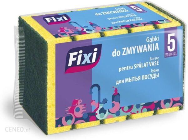 Gąbka do zmywania FIXI 5szt.Duży rozmiar doskonale nadaje się do czyszczenia dużych powierzchni, miękka gąbka do zmywania i szorstka fibra ułatwiająca szorowanie powierzchni.Surowiec: pianka poliuretanowa + fibra polipropylenowaRozmiary: 1 gąbka: długość 8,7 cm, szerokość 5,8 cm, wysokość 2,9 cmIlość: 5 szt w opakowaniu