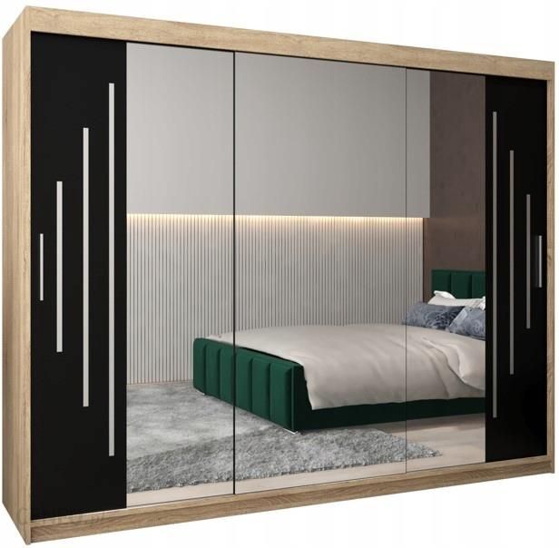 Szafa przesuwna YORK 2 – 250 cmWYMIARY:Szerokość: 250 cmWysokość: 200 cmGłębokość: 62 cmCHARAKTERYSTYKA:korpus: płyta laminowana w czterech kolorach o grubości 16 mmfront: płyta laminowana w czterech kolorach o grubości 16 mmozdobne paski w kolorze srebrnym do samodzielnego montażuuchwyty z tworzywa sztucznego w kolorze srebrnymdrążki metaloweprowadnice aluminiowesystem przesuwny firmy BIMAKkrawędzie wykończenia odporną na uszkodzenia okleiną PCV 0,5 mmW opcji dodatkowej możliwość dokupienia szuflad, nadstawki, regału narożnegolustro na drzwiachPRODUKT POLSKIDodatkowe informacje:KUPUJESZ OD PRODUCENTASzuflady można dokupić na innych naszych aukcjachMebel w paczkach do samodzielnego montażu.W komplecie w paczce akcesoria montażowe wraz z instrukcją.Wnętrze szafy:Wnętrze z szufladami (opcja dodatkowa):szuflady montuje się w drugiej komorze (licząc od dołu)metalowe prowadnicewszystkie potrzebne akcesoria w zestawieMożna kupić 2 lub 4 szufladyDostępne kolorystyki szaf:Wybrany kolor korpusu oraz frontu należy podać w wiadomości do sprzedającego.dąb artisan + biały mat + srebrnydąb artisan + czarny mat + srebrnydąb artisan + dąb artisan + srebrnybiały mat + dąb artisan + srebrnybiały mat + czarny mat + srebrnybiały mat + dąb sonoma + srebrnybiały mat + biały mat + srebrnyczarny mat + dąb artisan + srebrnyczarny mat + biały mat + srebrnyczarny mat + czarny mat + srebrnydąb sonoma + biały mat + srebrnydąb sonoma + czarny mat + srebrnydąb sonoma + dąb sonoma + srebrny
