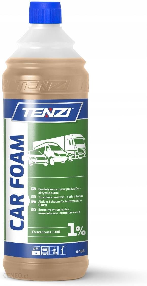OPISAktywna piana w koncentracie do bezdotykowego mycia wszystkich typów samochodów osobowych i dostawczych. Niezwykle skutecznie i szybko usuwa nawarstwiony brud drogowy, pochodzenia organicznego, a także zabrudzenia eksploatacyjne bez użycia szczotki czy gąbki. Wyróżnia się dużą zawartością związków zmiękczających, co znacznie ułatwia współpracę z twardą wodą. Preferowany do mycia wszystkich typów lakierów samochodowych. Nie zawiera fosforanów. Znaczną część produktu obejmują związki powierzchniowo czynne pochodzenia naturalnego, które są w pełni biodegradowalne. Preparat może być nanoszony zarówno przez profesjonalne pianownice (sucha aktywna piana), jak i opryskiwacz ręczny i pneumatyczny. Zalecany do bezdotykowego mycia pojazdów mechanicznych, w systemach myjni, które taki program posiadają, jak również do myjek wysokociśnieniowych poprzez lancę do piany.ZASTOSOWANIESamochody osoboweSamochody dostawczeSPOSÓB UŻYCIASporządzić roztwór roboczy (niezależnie od pory roku) w zależności od stopnia zabrudzenia:pianownica profesjonalna, opryskiwacz od 1:66 do 1:100 (1,5%÷1%)lanca do piany od 1:5 do 1:9 z wodąNanieść na karoserię i pozostawić na 1÷2 min celem zmiękczenia brudu.Zmyć i dokładnie wypłukać czystą wodą pod wysokim ciśnieniem.Stosowanie wody zdemineralizowanej eliminuje powstawanie smug pochodzenia mineralnego na karoserii po wyschnięciu.