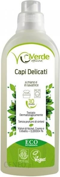 Ekologiczny płyn do delikatnych tkanin i wełny, do prania ręcznego oraz w pralceSkuteczny i bezpieczny środek piorący o delikatnym zapachu lawendy. Nadaje się do delikatnych tkanin i wełny. Wystarcza do 30 prań.Verde Orizzonte:Produkty tej marki są wegańskie, wydajne, zapewniają bezpieczne sprzątanie bez podrażnień!Bez barwników.Poddane testom skuteczności.Testowane pod kątem zawartości niklu, chromu i kobaltu (<0,00004%).Testowane dermatologicznie.Sposób użycia:Ręcznie: należy rozcieńczyć zalecaną dawkę produktu w zimnej lub letniej wodzie. Pozostaw odzież do namoczenia na około 10 minut, a następnie wypłucz. Nie wykręcaj i pozostaw do wyschnięcia, utrzymując ubrania płasko, z dala od źródeł ciepła. W pralce: wlej wskazaną dawkę na 2,5 kg prania do odpowiedniej przegródki i ustaw program wełna i delikatne tkaniny.Dawki na 2,5 kg prania.Woda miękka:lekko zabrudzone: 20 mlśrednio zabrudzone: 25 mlmocno zabrudzone: 33 mlWoda średnio twarda:lekko zabrudzone: 25 mlśrednio zabrudzone: 33 mlmocno zabrudzone: 45 mlWoda twarda:lekko zabrudzone: 33 mlśrednio zabrudzone: 45 mlmocno zabrudzone: 55 mlRĘCZNIE: wlać zalecaną dawkę do 10 litrów wody, pozostawić odzież do namoczenia na około godzinę, następnie wyprać i wypłukać.lekko zabrudzone: 20 mlśrednio zabrudzone: 25 mlmocno zabrudzone: 33 mlCertyfikaty:Skład:Aqua, Sodium Coceth Sulfate, Caprylyl/Capryl Glucoside, Sodium Chloride, Potassium Rapeseedate*, Cocamidopropyl Betaine, Trisodium Dicarboxymethyl Alaninate, Potassium Cocoate, Potassium Olivate*, Lavandula Hybrida Oil, Melaleuca Alternifolia Leaf Oil, Linalool.*Surfaktant z ekologicznych olejów rolniczych