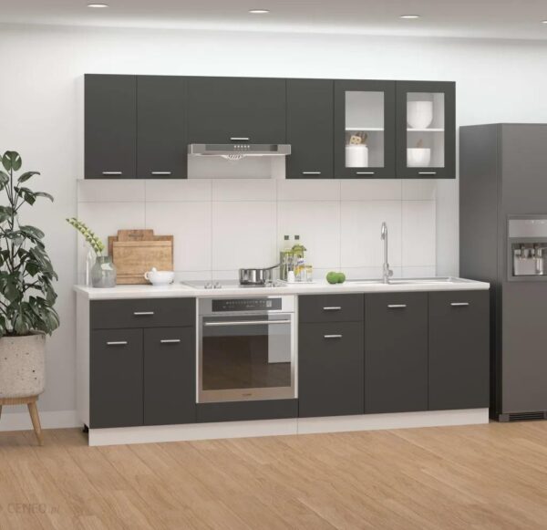 8-częściowy zestaw szafek kuchennych o eleganckiej konstrukcji pozwala zoptymalizować wykorzystanie przestrzeni w kuchni i zapewnia dużo miejsca do przechowywania Twoich rzeczy. Te szafki są trwałe i funkcjonalne, dzięki czemu Twoja kuchnia będzie lepiej zorganizowana. Oferują również wystarczająco dużo miejsca do przechowywania misek, talerzy, garnków i urządzeń kuchennych. Dodatkowo zestaw ten można łatwo wyczyścić, wystarczy przetrzeć wilgotną ściereczką. Prosimy mieć na uwadze: blat, kran, zlew i urządzenia elektryczne nie wchodzą w zakres dostawy.