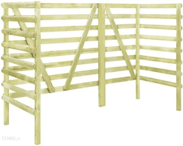 Ta potrójna osłona z drewna to idealne rozwiązanie na ukrycie koszy na śmieci w ogrodzie.Osłona nie ma górnej pokrywy ani przednich drzwi, więc kosz można swobodnie wyjmować i opróżniać. Ta osłona na kosz została wykonana z impregnowanego drewna sosnowego, dzięki czemu jest nie tylko odporna na czynniki pogodowe i trwała, ale wniesie również rustykalny urok do Twojej przestrzeni na zewnątrz. Dołączone akcesoria montażowe pozwalają na przymocowanie osłony do ziemi oraz łatwy montaż.Uwaga: kosze na śmieci nie stanowią części paczki. Prosimy mieć na uwadze, że drewno jest materiałem naturalnym i może wykazywać pewne niedoskonałości.Materiał: impregnowane drewno sosnoweWymiary: 210 x 80 x 150 cm (szer. x gł. x wys.)Produkt odpowiedni na 3 kosze o pojemność 240 LAkcesoria montażowe w zestawie