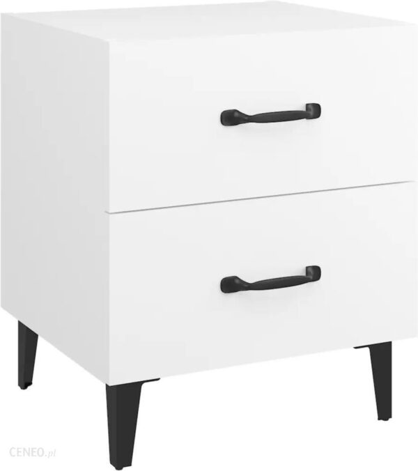 Wprowadź powiew industrialnego uroku do wystroju swojego wnętrza za pomocą tej szafki nocnej!Wysokiej jakości materiał: tworzywo drewnopochodne charakteryzuje się wyjątkową jakością i gładką powierzchnią, a także wytrzymałością, stabilnością i odpornością na wilgoć.Mocne nóżki: metalowe nóżki dodają wnętrzu uroczego, industrialnego stylu, zapewniając jednocześnie stabilność. Sporo miejsca do przechowywania: szafka ma dwie szuflady z metalowymi uchwytami. Przestronne szuflady pozwolą przechowywać rzeczy w sposób uporządkowany. Solidny blat: mocny blat stolika nocnego jest idealny do wyeksponowania przedmiotów dekoracyjnych, ramek ze zdjęciami lub roślin doniczkowych.Kolor: białyMateriał: materiał drewnopochodny, metalWymiary: 40 x 35 x 47,5 cm (szer. x gł. x wys.)Wymagany montaż: tak