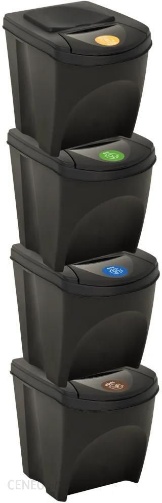 Te kosze na śmieci są wygodne, higieniczne i stanowią najlepszy i najczystszy sposób na wyrzucenie śmieci w domu lub biurze.Kosz na śmieci wykonano z polipropylenu, dzięki czemu jest mocny, lekki i pozwala zachować higienę. Pokrywa jest zdejmowana, co umożliwia łatwe i szybkie czyszczenie. Dzięki etykietom sortowanie śmieci jest wygodniejsze. Dodatkowo konstrukcja umożliwiająca układanie w stos pozwala zaoszczędzić więcej miejsca.Kolor: antracytowy Materiał: PP (polipropylen) Wymiary (każdy): 39,2 x 29,3 x 33,5 cm (szer. x gł. x wys.)Całkowita pojemność: 100 L (25 L x 4)Każdy kosz jest opatrzony etykietą, która ułatwia segregację (szkło, papier, plastik, bioodpady, inne)Wymagany montaż: nieZawartość przesyłki:4 x kosz na śmieci