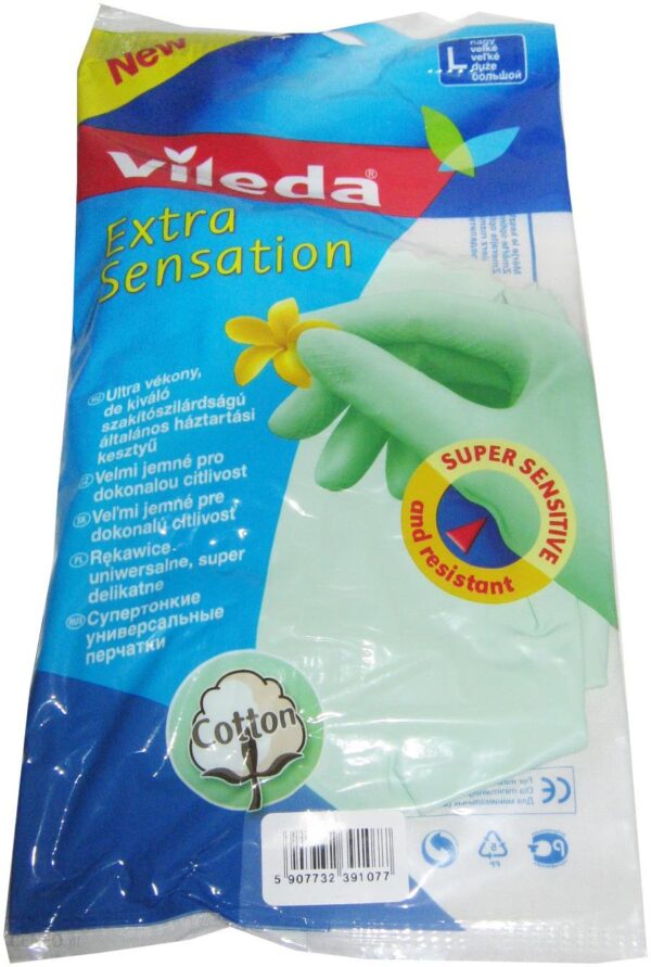 Rękawice EXTRA SENSATION M VILEDA to wygodne i zapewniające bezpieczeństwo dłoniom rozwiązanie przydatne w każdym domu. Dzięki jakości zastosowanych materiałów pozwalają trzymać przedmioty pewnie bez ryzyka wyślizgnięcia się z dłoni. Rękawice EXTRA SENSATION M VILEDA charakteryzuje:dostępność w 3 wygodnych rozmiarach odpowiednio przylegających do dłoni,wysoka trwałość pozwalająca na wielokrotne użytkowanie,pewne trzymanie mytych przedmiotów.Wysokiej jakości uniwersalne rękawice EXTRA SENSATION M VILEDAto gwarancja komfortu i wygody w codziennych porządkach oraz niezbędne wyposażenie podczas wielkich porządków.