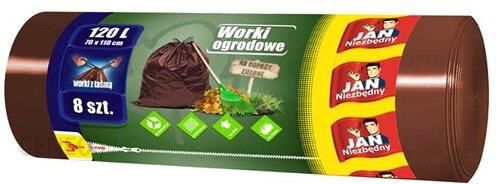 Worki na odpady zielone, o pojemności 120 l, marki Jan NiezbędnyWorki ogrodowe przeznaczone do segregacji odpadów zielonych (trawy i liści). Wykończone praktyczną taśmą, która umożliwia łatwe i skuteczne zawiązanie worka.Ekstra grube worki o pojemności 120l. W opakowaniu 8 sztuk.