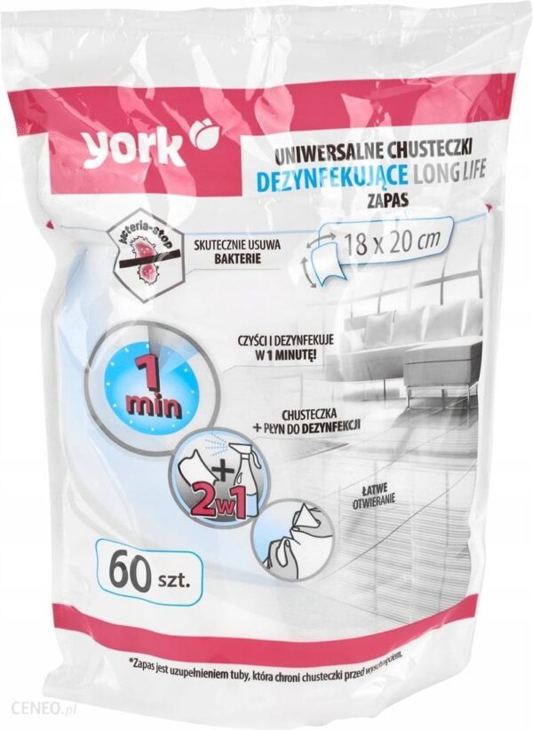 Chusteczki nawilżane antybakteryjne York zapas 60s